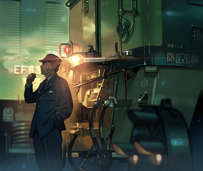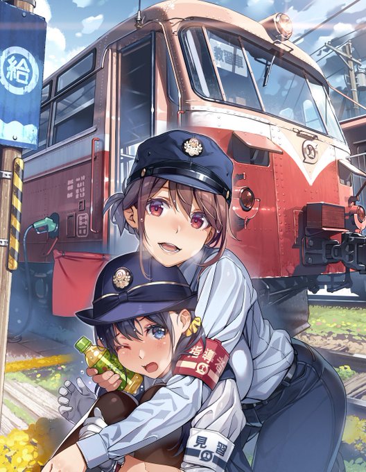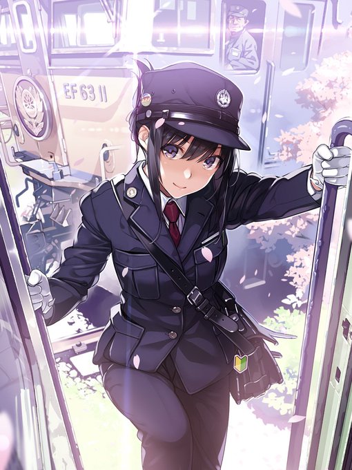 「機関ジョシの制服は、一見機関士と同じだけど、 機関士を示すわかり易いもの(名札や腕章等)を付けないのが特徴」 って言う、和の心が滲む画で参加させて頂いてます。 #絵師100人展 twitter.com/eshi_100_ninte…