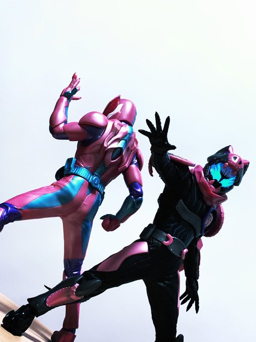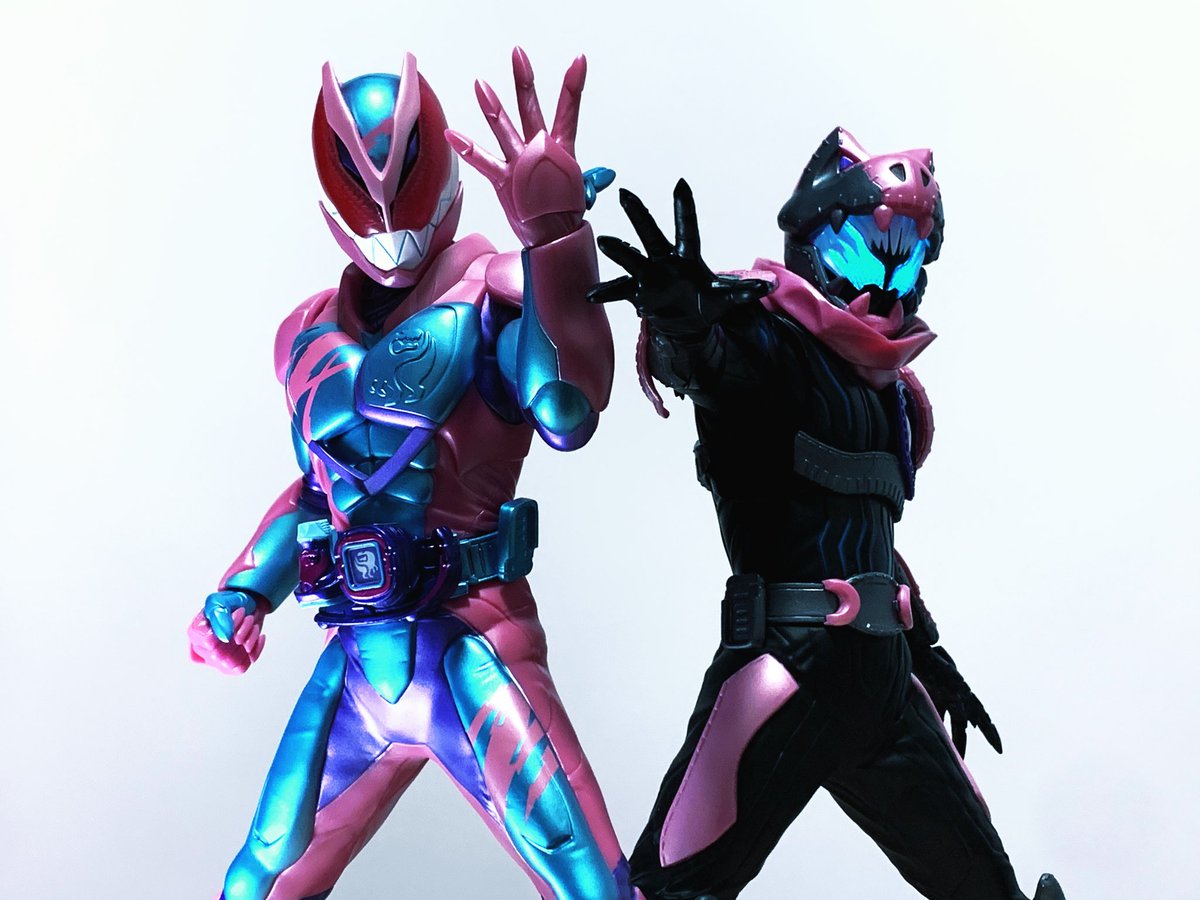 お題「チーム」 余談…バイスタンプホルダーが逆向きに接着された。俺だけのリバイ。 #夜のフィギュア撮影会