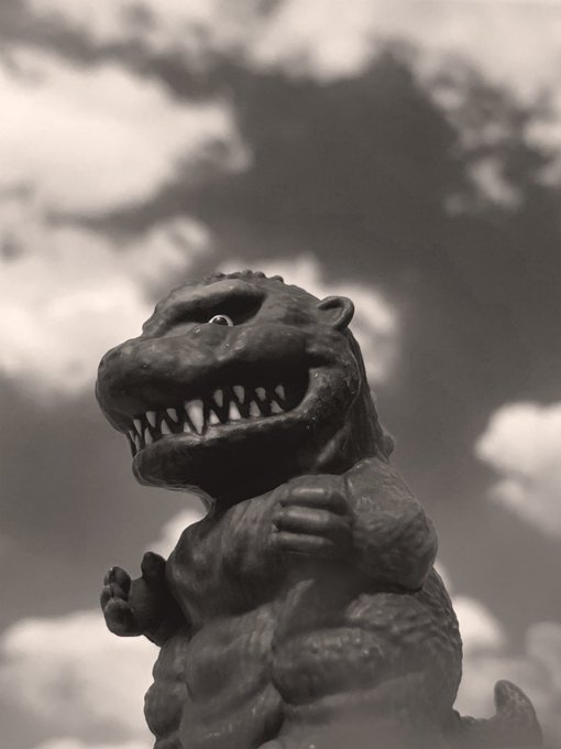 お題「フリー」 何もない場所で此方を睨むゴジラ 最新作で見たい。 #夜のフィギュア撮影会