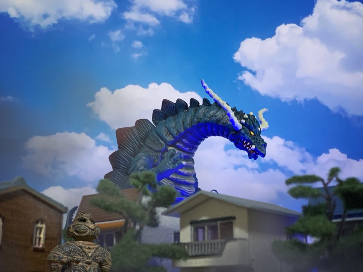 5 39 お題「フリー」 何もない場所で此方を睨むゴジラ 最新作で見たい。 #夜のフィギュア撮影会 22/11/10 21:00