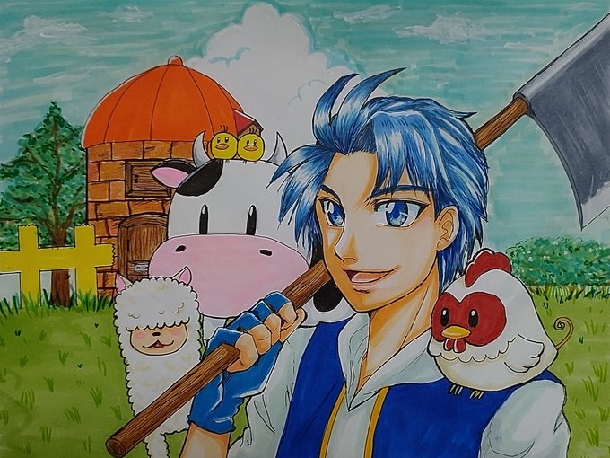 配信見つつ、カキカキとぬりぬりしてやっと完成しました〜! #じんぐーあーと #牧場物語
