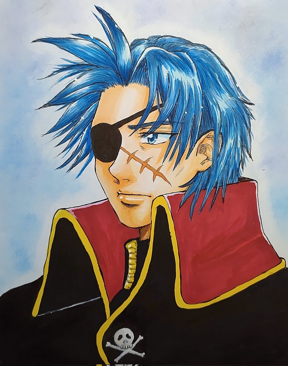 松本零士さんのキャプテンハーロックが好きでした! ふと、神宮寺さん似合いそうと思って描いてみました! #じんぐーあーと