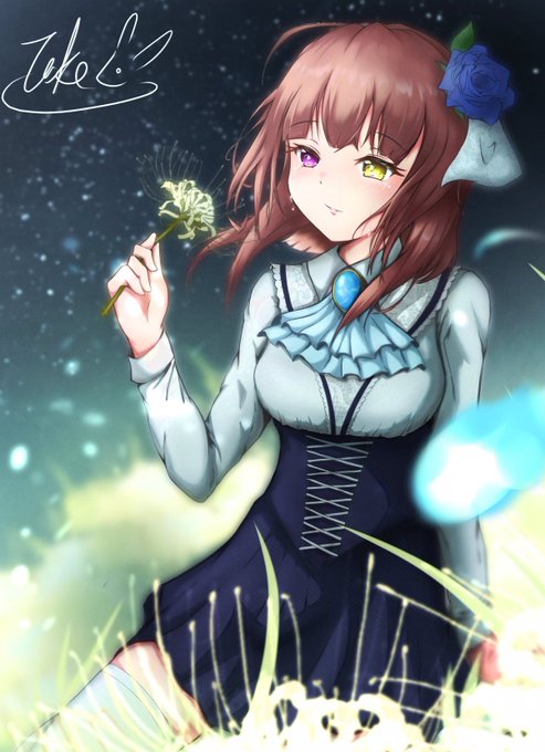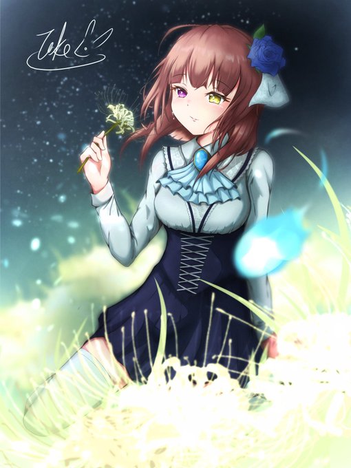 今回はこじゅを描きました!白のリコリスの花言葉は「また会う日を楽しみに」だそうです。こじゅイベにぴったり! #ヘブバン #ヘブバンファンアート #イラスト好きな人とつながりたい #イラスト練習中