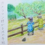 0 178 カメラマン群がる池や牛蛙 カワセミ(翡翠)が池の魚を取る瞬間を撮ろうと多くのカメラマンが池の周りに陣取ります。決定的瞬間には、一斉にシャッター音がなり、その時牛蛙がびっくりしてか、「ブォーブォー」と鳴きます。 牛蛙は姿を見せませんので想像で描きました。 #色鉛筆俳画 #色鉛筆画 #俳句 22/08/27 20:56