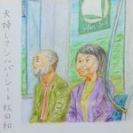 7 203 夫婦してシルバーシート秋日和 この秋、妻がシルバーに仲間入りし、夫婦して優先席に座っています。 高齢者をシルバーと呼ぶようになったのは、国鉄が昭和48年に高齢者優先席として、銀色の布地を使用したシルバーシートを中央快速に導入した以降だと言われています。 #色鉛筆俳画 #色鉛筆画 #俳句 22/09/18 16:21