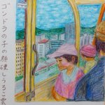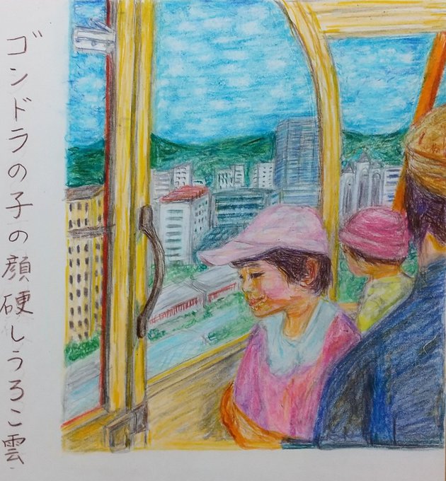 ゴンドラの子の顔硬しうろこ雲 神戸のモザイクにある大観覧車は、大震災の復興のシンボルとして平成七年にオープンしました。この秋、観覧車に孫達と乗りました。神戸の街並みが一望でき、てっぺんに近づくにつれ、孫等は段々静かになり、顔の表情が硬くなっていきました。 #色鉛筆 #色鉛筆画 #俳句