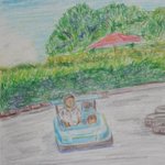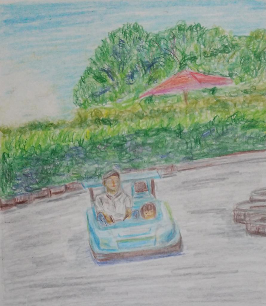 過去の色鉛筆俳画です。 (俳句) 秋うらら子を乗せそろりゴーカート (色鉛筆画) 別途添付 ❇️神戸ワイナリー農業公園で、孫とゴーカートに乗りました。 #色鉛筆俳画 #色鉛筆画 #俳句 #ゴーカート