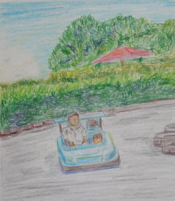 4 158 過去の色鉛筆俳画です。 (俳句) 秋うらら子を乗せそろりゴーカート (色鉛筆画) 別途添付 ❇️神戸ワイナリー農業公園で、孫とゴーカートに乗りました。 #色鉛筆俳画 #色鉛筆画 #俳句 #ゴーカート 22/10/14 16:32