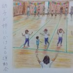 *秋の句 幼子が姉にかけよる運動会 幼稚園の運動会は、小さな妹や弟も親と一緒に見にきています。初めのうちはおとなしく姉や兄のお遊戯・かけっこを見ていますが、次第に退屈してきてそこら辺りをうろうろします。私の孫娘もお姉ちゃんに嬉しそうに駆け寄っていました #色鉛筆俳画 #色鉛筆画 #俳句