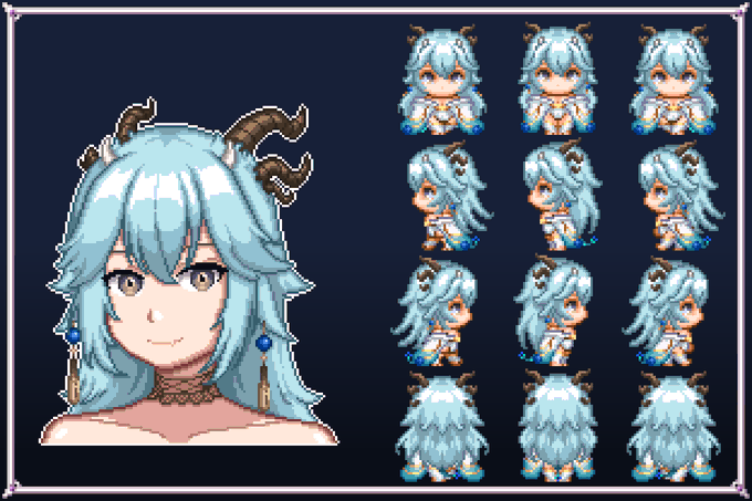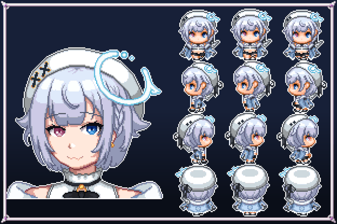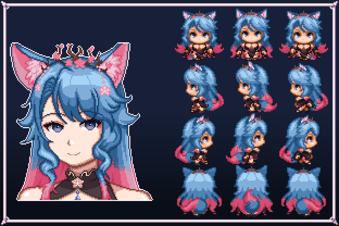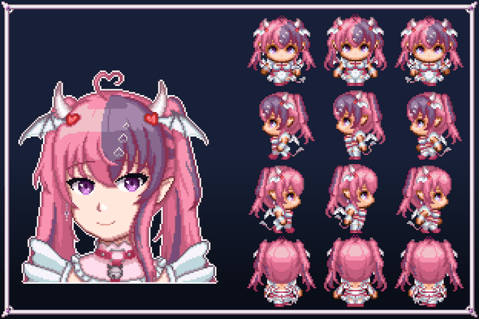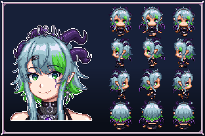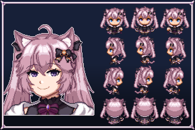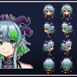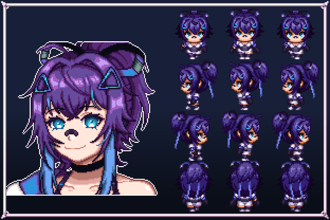 Portrait and Sprites commissioned by @vdev_robin for his VShojo fan-made game. Make sure to check him out! #VShojo #VShojoArt #projektmelodyfanart