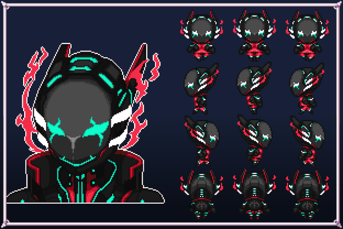 Another portrait and sprite sheet commissioned by @vdev_robin for his VShojo fan-made game. This time it's Projekt Melody's robbot buddy, T1M. Make sure to check him out! #VShojo #VShojoArt #projektmelodyfanart