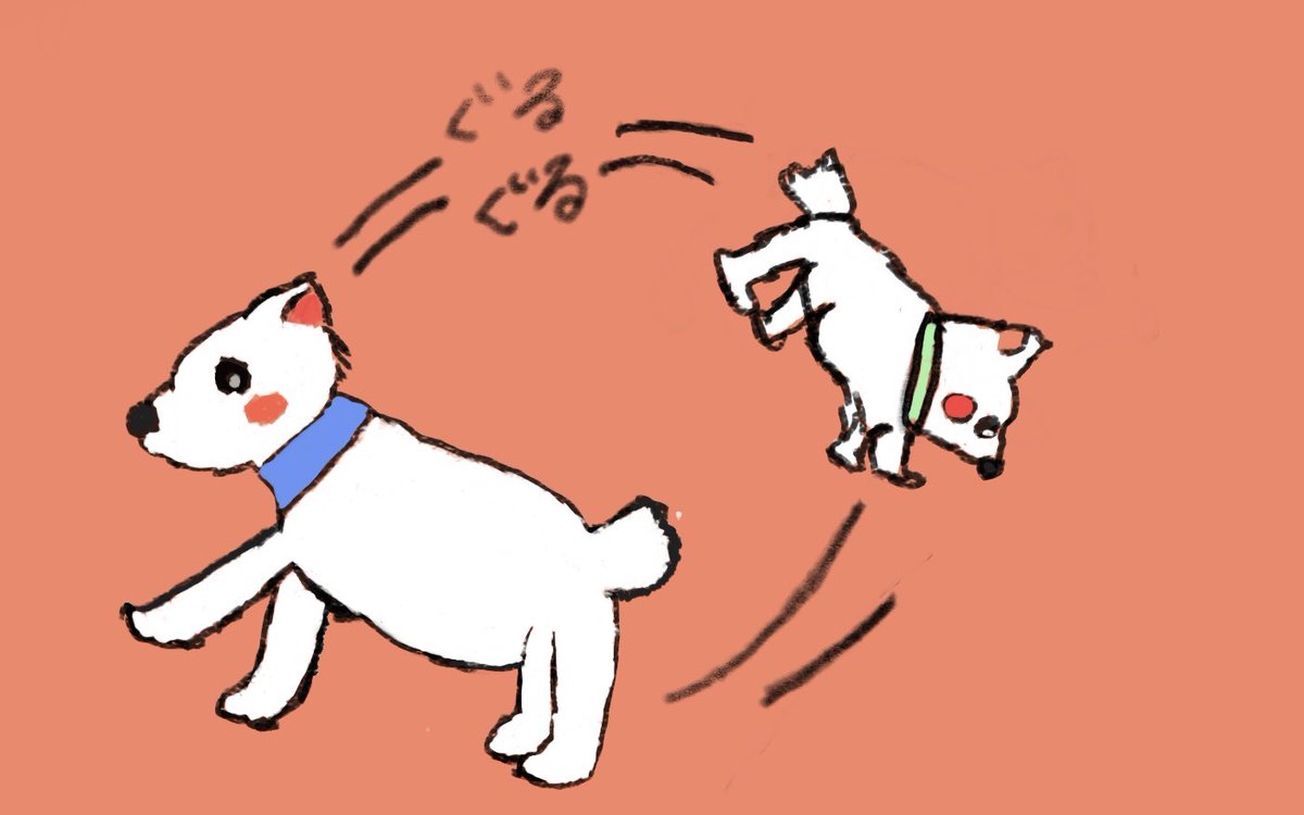 #イラスト #犬 #ラクガキ #散歩前 #ペット 我が家のペットは散歩前に必ずぐるぐるします。 「ぐるぐるする犬」