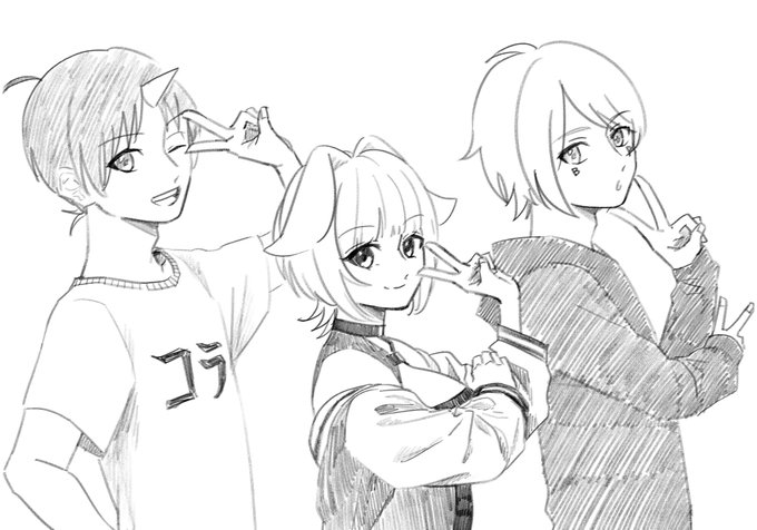 コラボ2回目見たから落書きした!みんなかわいい! #紺アイ画 #ケムセン @BayPippi