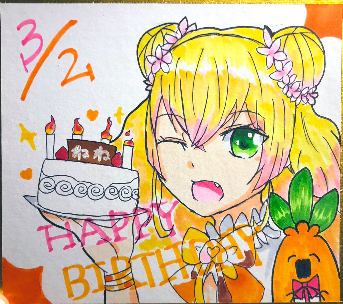 ねねちゃん、お誕生日おめでとう〜〜!!🥳🥳ねねちゃんの誕生日を迎えられてすごい嬉しいよ🥕 ねねちゃんに出会えたことに感謝✨ イラスト、下手でごめんね😣これからどんどん上手くなるように頑張るね! #桃鈴ねね誕生日2022 #ねねアルバム