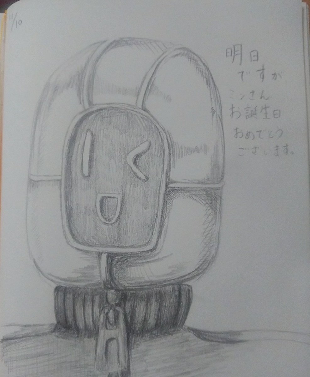 0 17 今日の日記。 シャーペンで落書きミンさん。 21/11/10 23:00