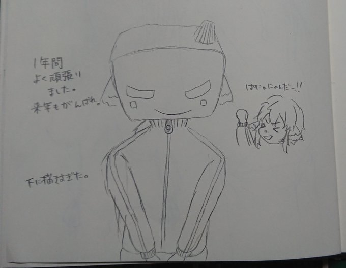0 12 本日の日記。 はこちゃんに労わって欲しかった(言い方)から描きました。本当はお辞儀してる感じにしたかったけどノートの下に描きすぎて入らなかった 。 21/12/31 21:40