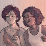 self indulgent art 😌I'm living for griddlehark modern au. i need to draw more of harrow being soft and gideon basks in it bc i really love it #griddlehark #thelockedtomb #digitalart