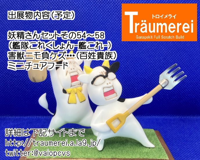 6 7 ワンフェスの本申請を無事完了。 予定出展物は 艦これの妖精さんセット5種類(10体) 百姓貴族(再販) #WF2023S #艦これ #百姓貴族 23/05/08 22:47