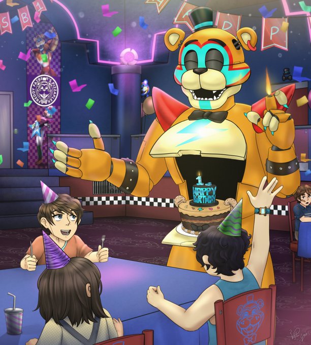 🎉🐊🐺HAPPY 1 YEAR ANNIVERSARY, SECURITY BREACH! 🐻🐥🎉 I'm a little late... but fashionably late right? :D I couldn't let myself NOT do something for this game's birthday #fnaf #fnafsecuritybreach #glamrockfreddy