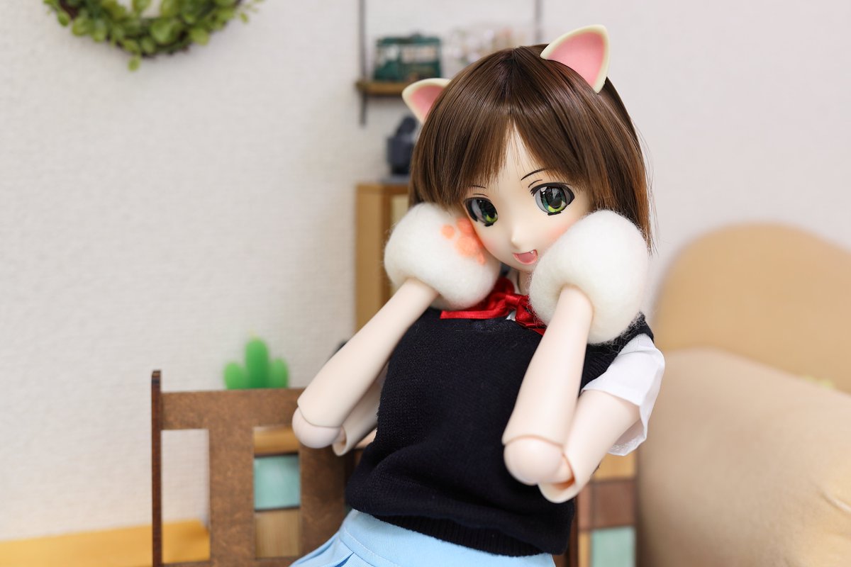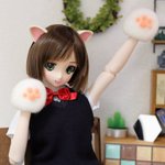 まだ写真撮ってなかったので・・・ みくにゃん用に買ってあったネコグローブと100均で見つけたヘアピン #デレマスドール部 #前川みく