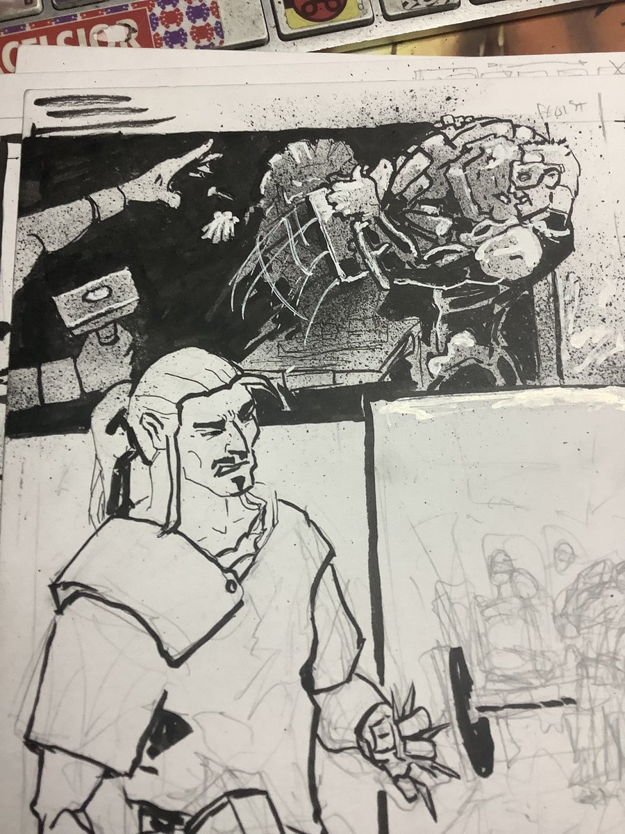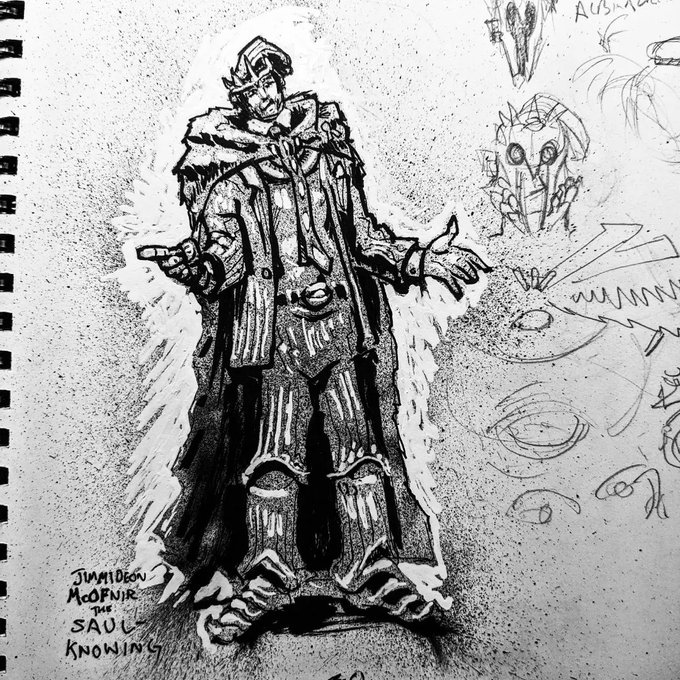 Here's another semi-done #eldenFring character, Jimmideon the Saul-Knowing, and another #gustavothegrafted rough ink that I'll tone later. #breakingbad #eldenring #fanart #mashup