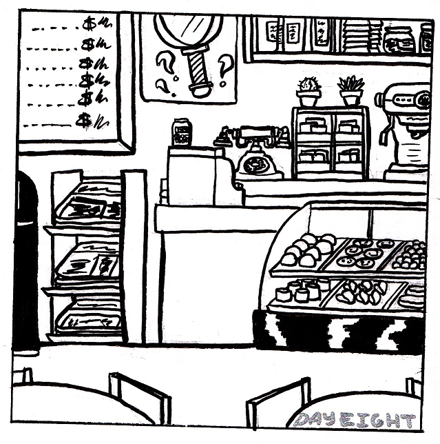 from inktober 2017: bonus storefront! this time it's a restaurant x) i enjoyed making these #artistsontwitter #environment #interiors #inktober #inktober2017