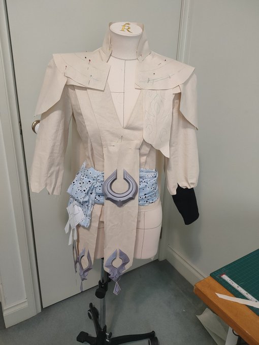 Kaveh progress started draping the cape pattern and finished embroidery for the back of his shirt. Just need to do the sleeve embroidery and some other small bits and I can stitch the shirt together 🤩 #kaveh #GenshinImpact #genshincosplay #cosplay #genshin