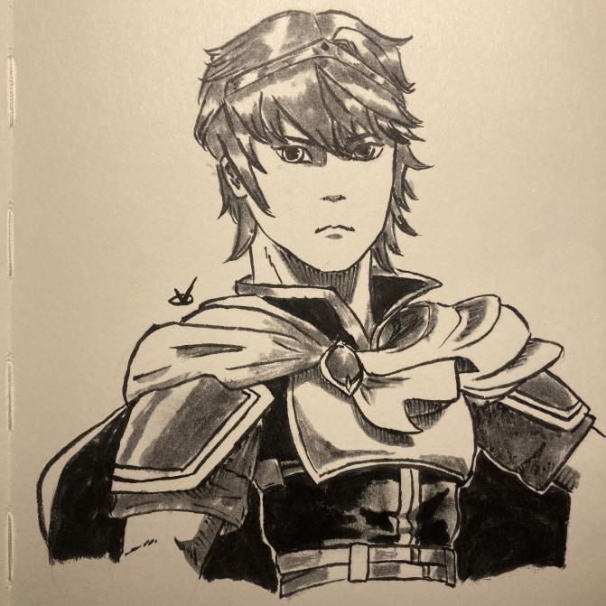 Fightober Day 27 - Sword: Marth #Fightober #Fightober2022 #Inktober #Inktober2022 #Marth #Sword #FireEmblem #SSBM #SmashBrosMelee #Melee #Nintendo #fgc #penart #brushpen