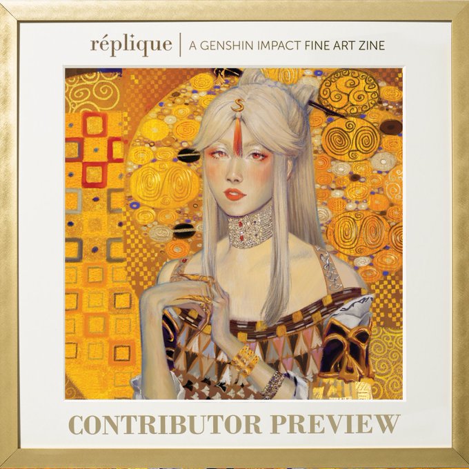 "Woman in Gold" is currently exhibiting at the @GenshinArtZine museum. Tickets are available at genshinartzine.bigcartel.com. -~-~-~ Preorders are open! We just hit the first stretch goal too, the next one is the a foil upgrade so run don't walk to preorder this genshin fine art zine
