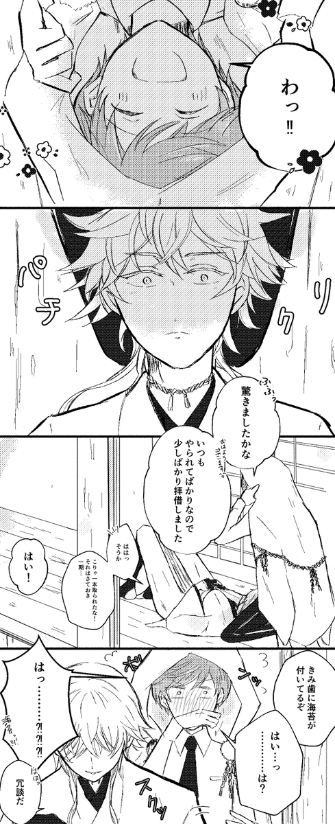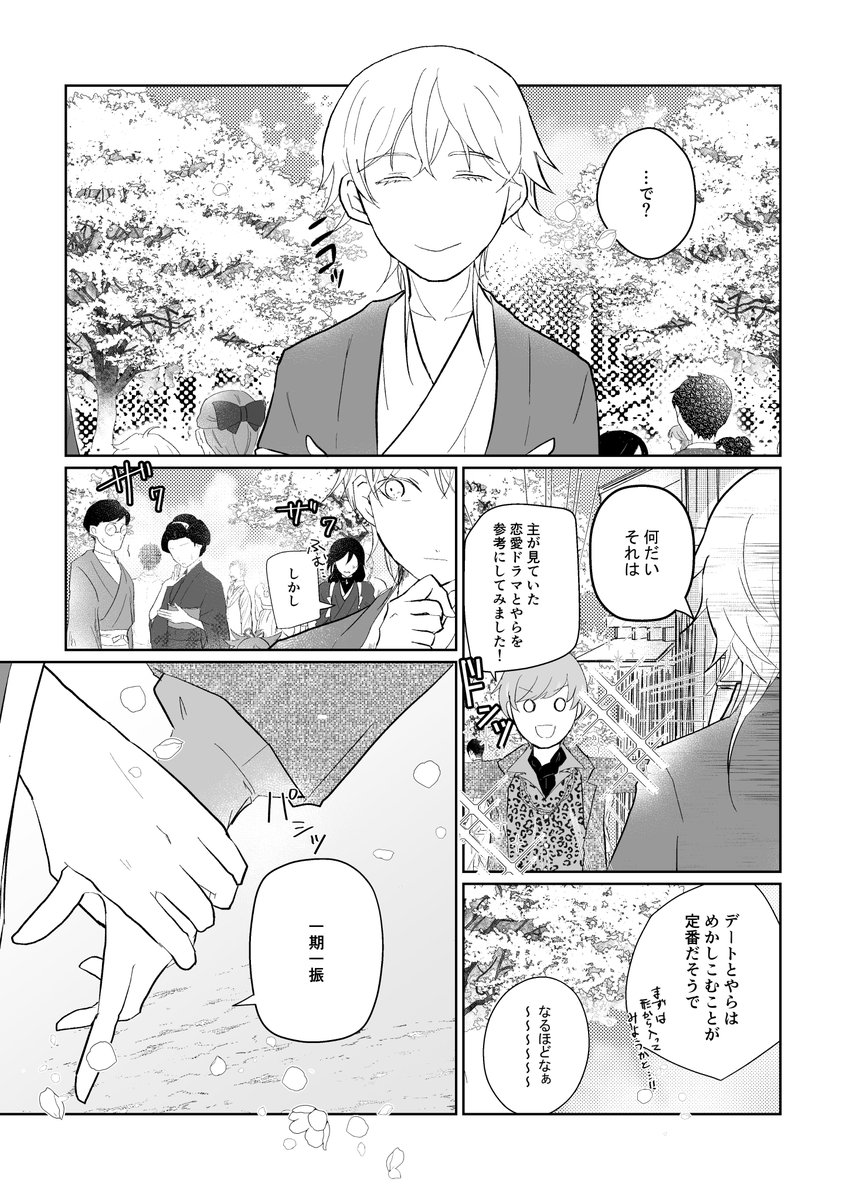 7/30 もんめ新刊サンプル。1/2 初の一期が鶴丸の仮の恋刀をすることになったお話です。 冒頭にオリキャラが少しだけ出るので ご注意ください。