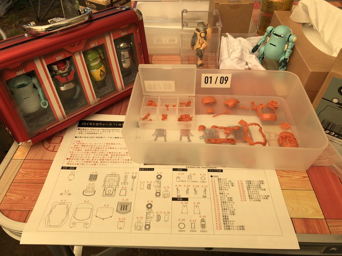 3 23 卓上グラインダー万歳! 手磨きより数倍早く片付くぜ! リニューアルトキマのスチームとリミテッドを混ぜた塗装にする予定。 #メカトロウィーゴ 18/12/13 20:41