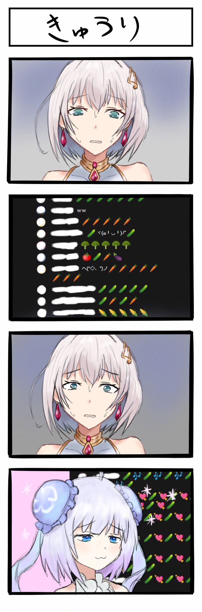 4コマ #お月見展示会 #ゆる図鑑 #がんばってゆるちゃん #野菜食べろみくる #野菜から逃げるなみくる original: twitter.com /paxiti/status/980090269197414400