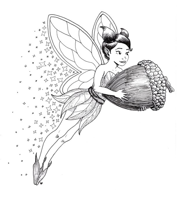 1 6 Fairy carrying an acorn! #inktober2022 #fairy #art 22/10/13 23:44