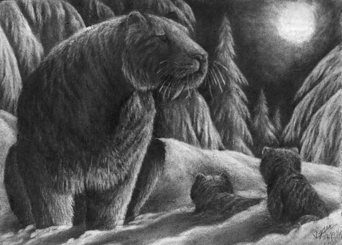 The #sabertooth Smilodon and her #kittens becoming the #kittensoftwitter these days! #graphite #Pencildrawing #pencilsketch #pencil #ArtistOnTwitter #artistsontwitter #artist #paleontologia #paleoart #paleontology #Moonlight #mammals #Mammal #mammalpaleo