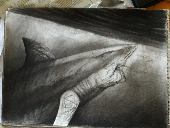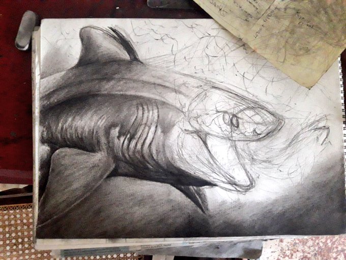 OKAYYYY SOOOO #saivodus is coming 😳😳😳 FUNNY that the girl who started popularizing this giant didn't MAKE one huhhh #shark #Charcoal #charcoalart @HodariNundu @FabioAleRomero 😎😎😎 #paleoart #paleontologia