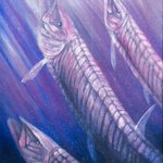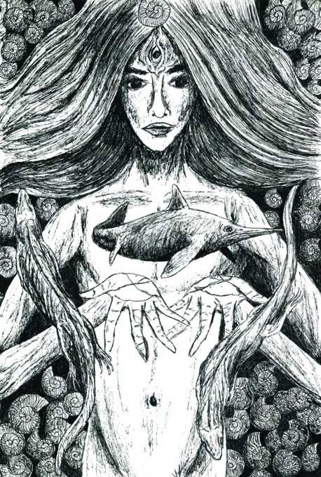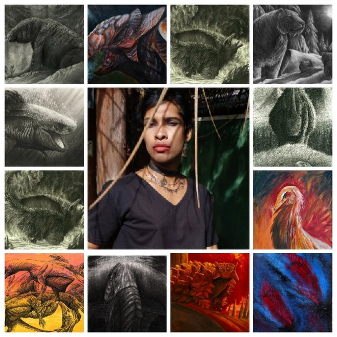 Oh for #PortfolioDay2022 I declare that I am a traditional artist who loves a bit of marine life and inventive and bright color schemes in her paleoart! Also does some genre fuckery and makes something more psychedelic or surreal or minimal heeh.
