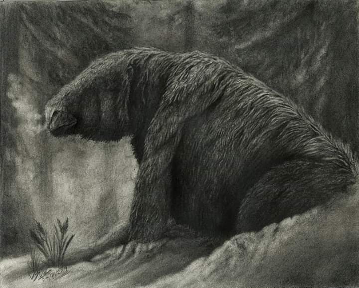 So that artwork is a #graphite #paleoart #artwork of a #sloth called Eremotherium laurillardi that existed in North America and may have encountered snow 👀 #paleontology #paleontologia #paleoclimate #paleo #artistsontwitter #art #Mammal #mammals