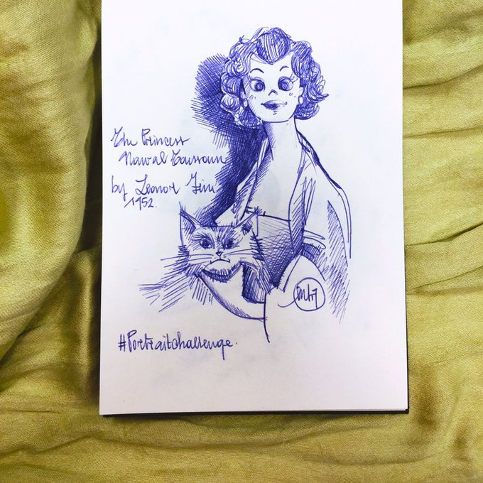Late #PortraitChallenge entry today! Catching up all the good habits after #inktober! The princess Nawal Toussoun, painted by Leonor Fini in 1952 @StudioTeaBreak