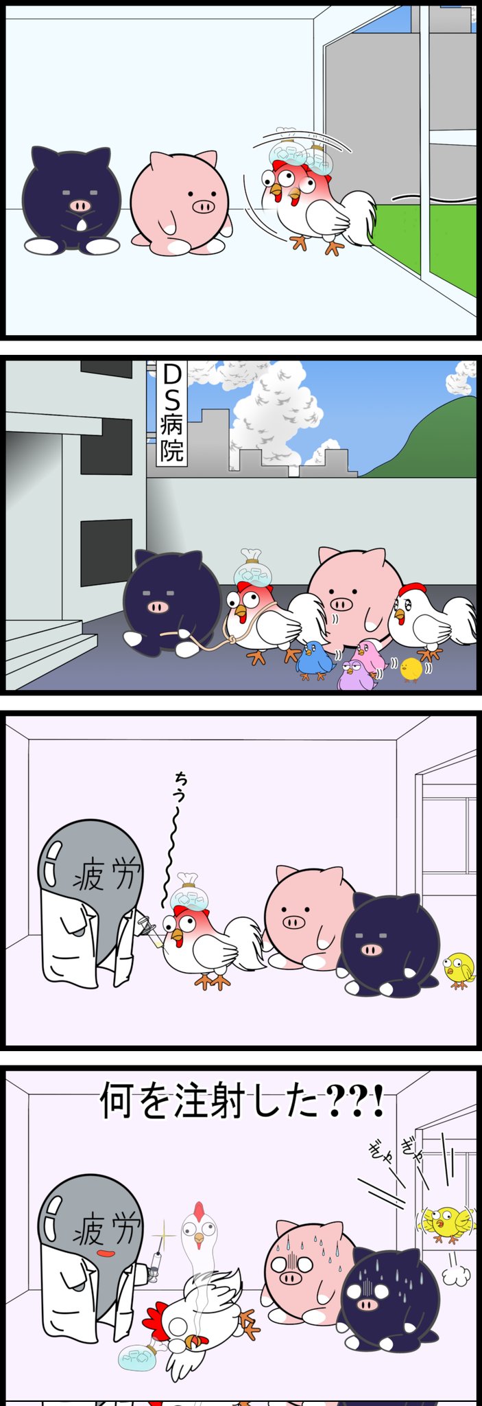 3匹のブタさん+2匹目 909本目 #4コマ #4コマ漫画 #オリジナルキャラ #cartoon #鳥インフルエンザ #注射 #ワクチン #でぃーぷすてーと ameblo.jp/butasan-plus/