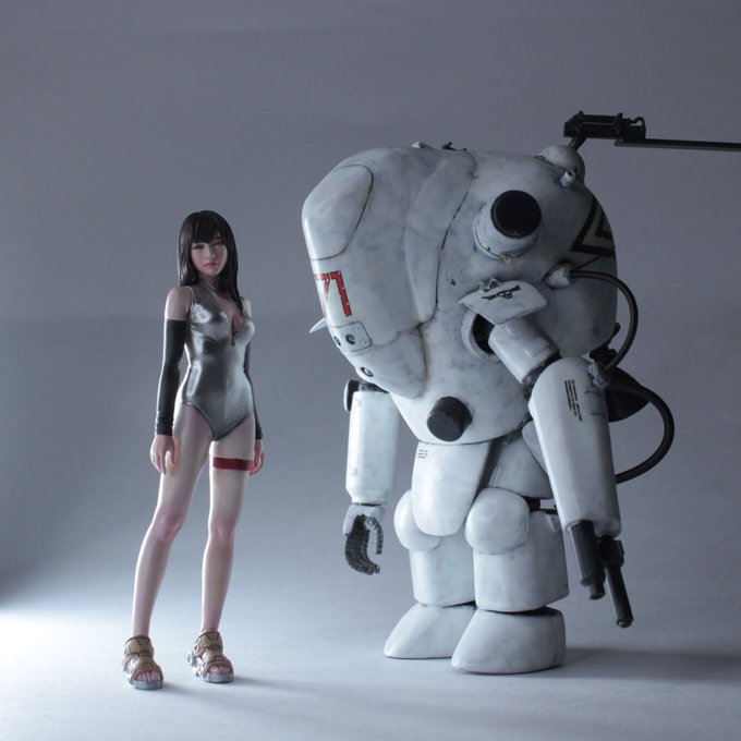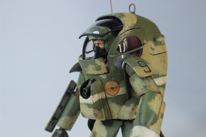 マシーネンクリーガー、「カウツ」完成しました❗️ 同じく今月作った「舷窓の向こう」と並べて撮影。 エアブラシ買ってから離れていた筆塗りで仕上げ🫡 宇宙用のスーツなのでウェザリングはかなり控えめです。 お姉さん目が怖いので拡大厳禁でお願いします😵 #今月作ったプラモ晒そうぜ