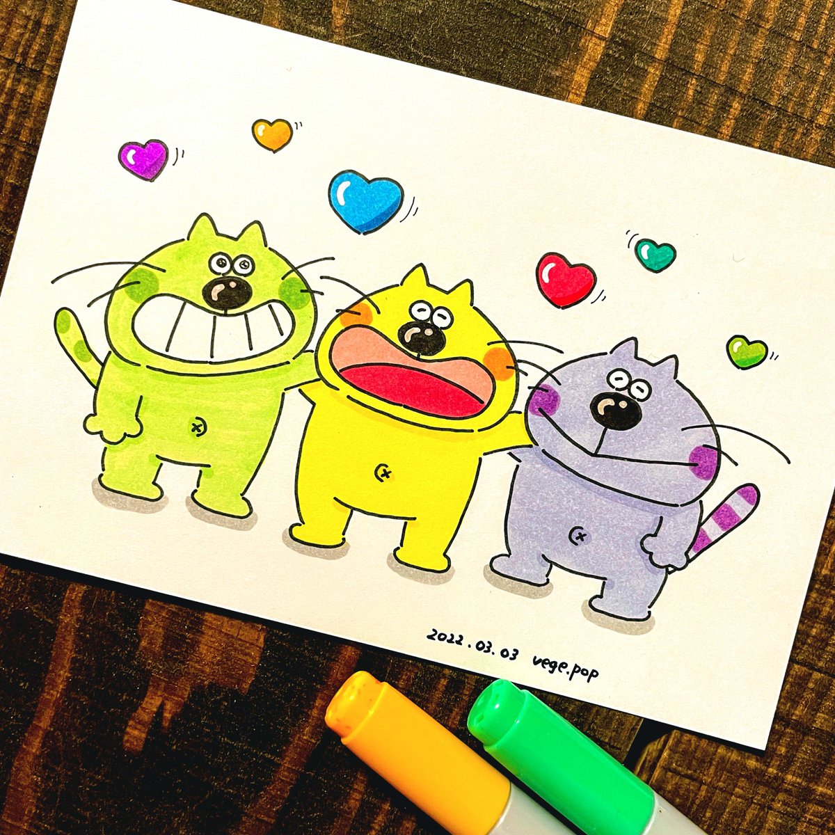 ニャーニャーニャー🐾 . #イラスト好きな人と繋がりたい #イラスト #イラストレーター #イラストレーション #illustration #art #drawing #絵描きさんと繋がりたい