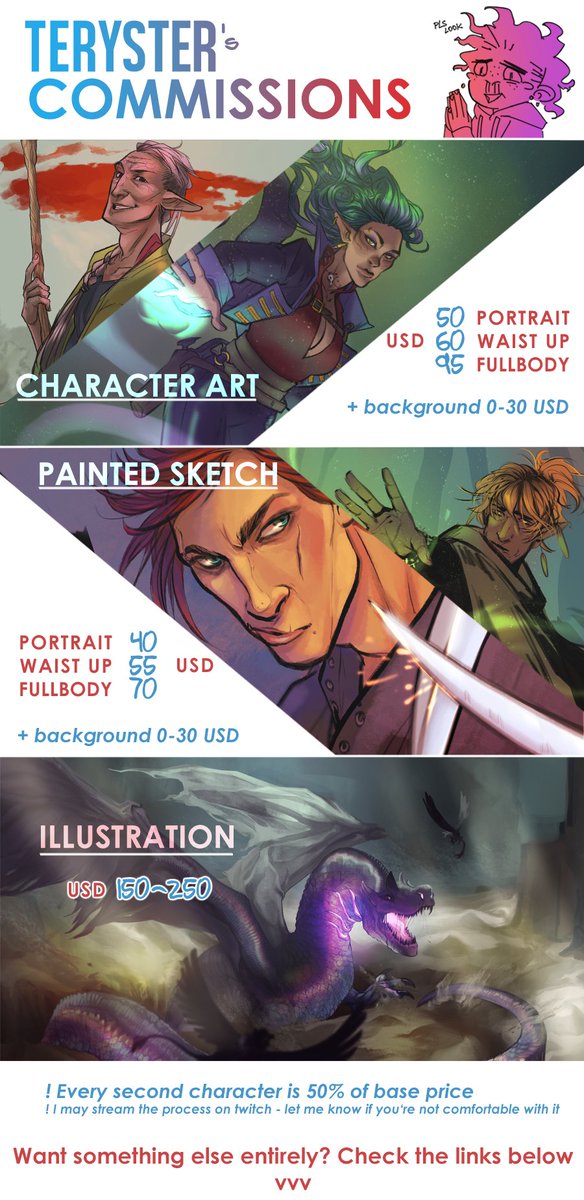 🙏EMERGENCY #COMMISSIONS🙏 taking last orders before new job and having no time for comms. It would help me immensely if you could share/consider getting one, as I'm currently struggling with rent :') More info here: teryster.tumblr.com/post/684130180… #characterdesign #oc #dndart #ttrpg