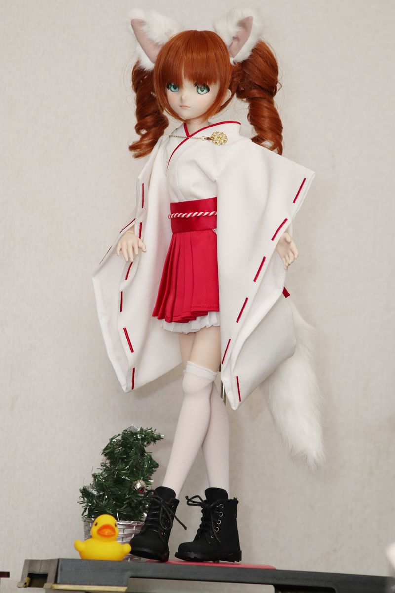 新作には目がないのでボークスから本日発売の巫女服と狐セットを買いましたんζ*'ヮ')ζ 履物は下駄のが良かったかもと思ったけどブーツもハイカラスタイルでアリかなw #ドルフィードリーム #まあかさんちのやよいちゃん