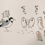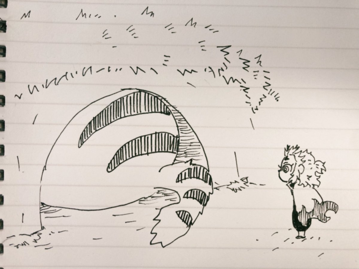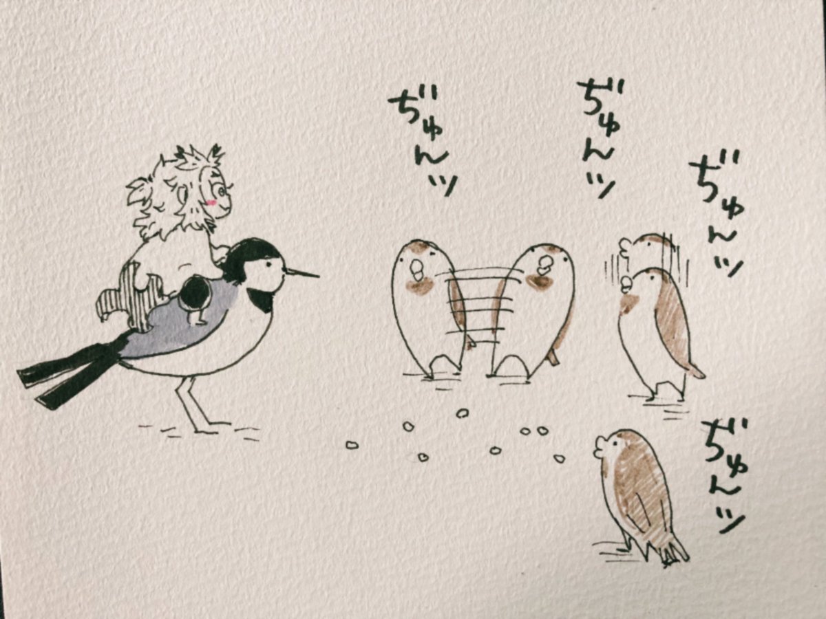 昼休みアナログ 朝完全アウェーな感じでスズメ兄弟に圧食らってゴハンに近づけないセキルェイを見てセ、セキルェイちゃん(´°̥̥̥̥̥̥̥̥ω°̥̥̥̥̥̥̥̥`)てなったので🔥ヘラさんを添えて描きました🌿