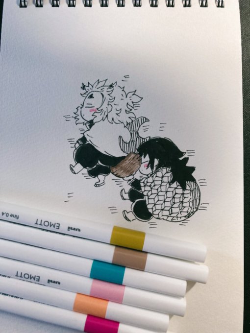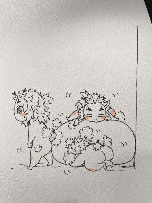 58 1060 昼休みアナログ しっぽガードどんぐりおぼうししながら寝ちゃった🔥ヘラさん🌊ヘラさん。 差し入れで頂いたスケブと色ペン使わせて頂きました🌸 23/08/01 15:03