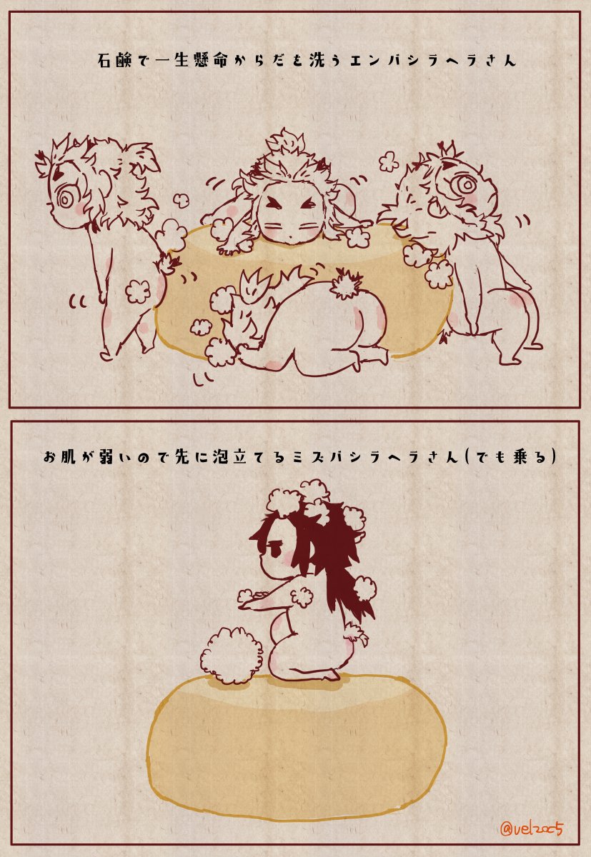 先日のセツケン🧼で洗うヘラさんを比較的真面目に描いたものです🛀