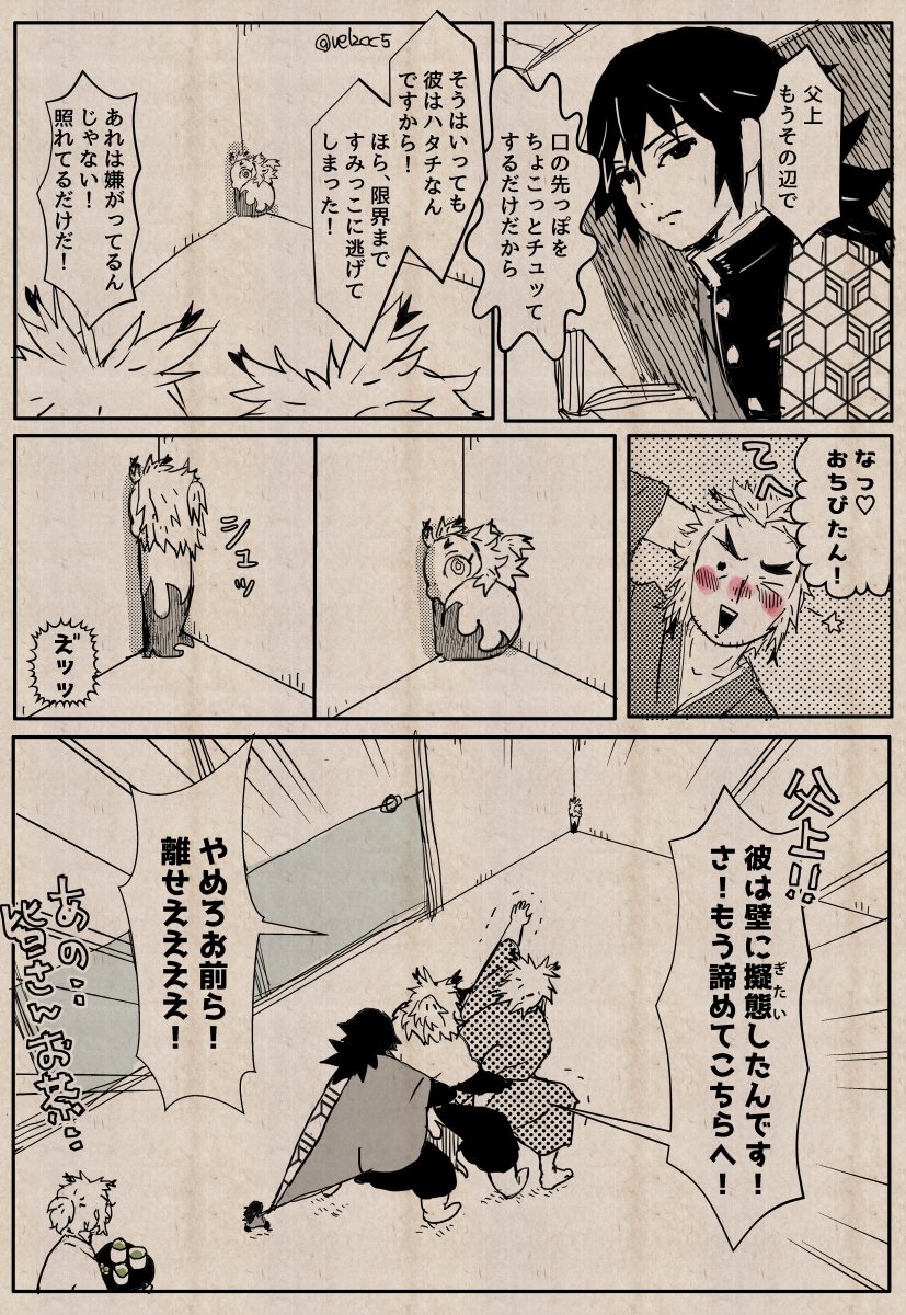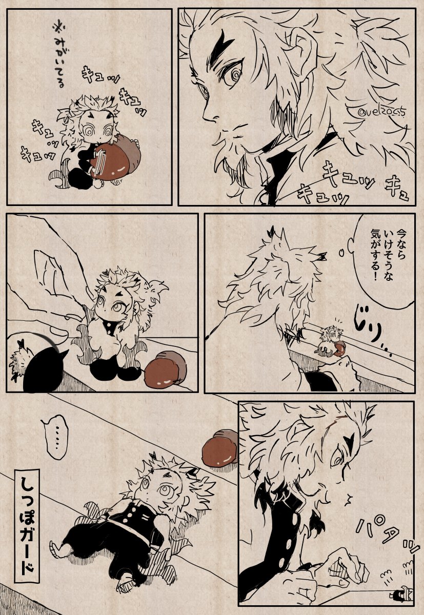あとこれは先日描いた一枚漫画です。 自分(小さな俺少年)のしっぽならば!と思って羽織めくりする大きな🔥さん。