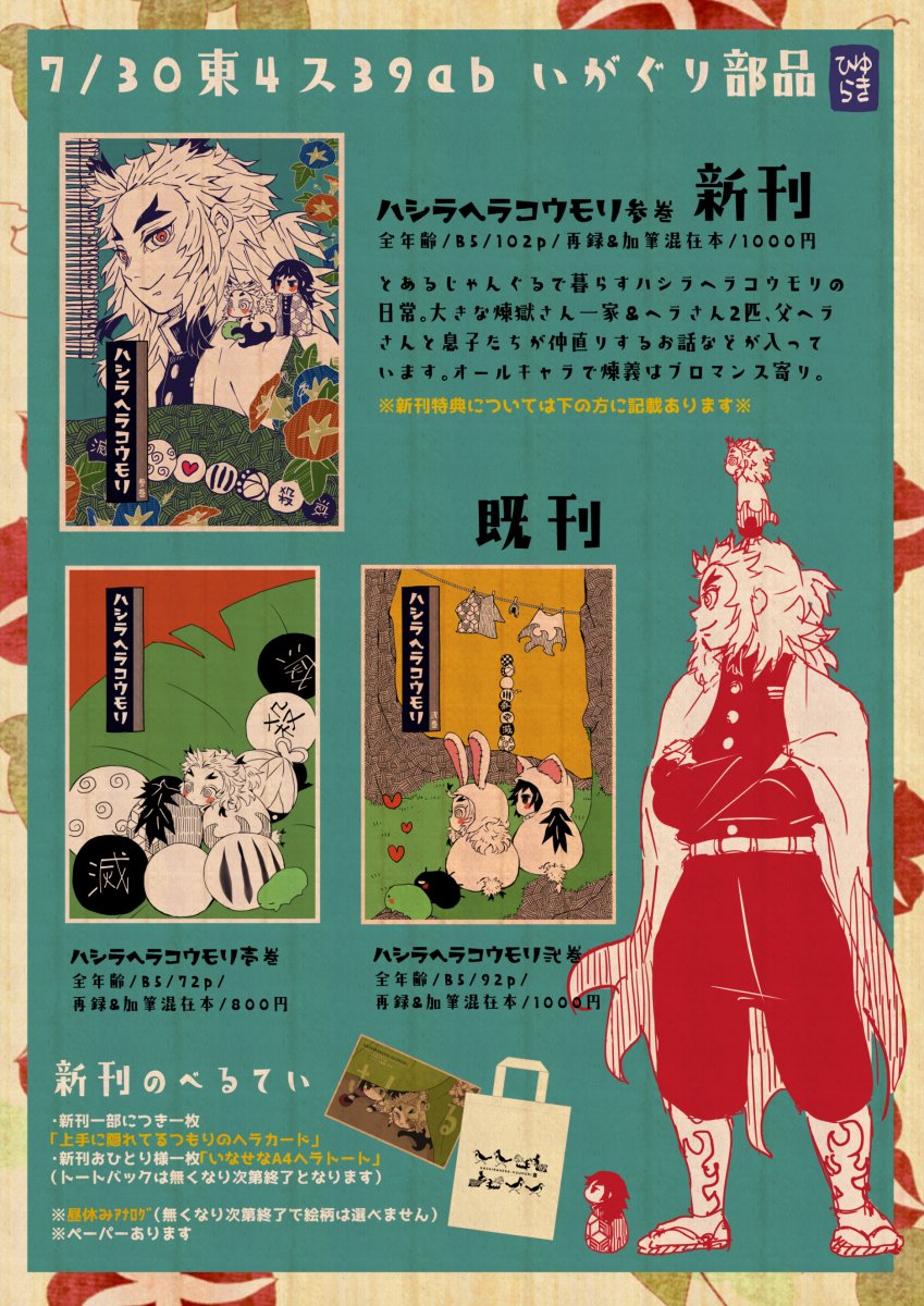 【通販について】 新刊オマケ2種付きが予約満数となりましたので新刊オマケ1種付きの予約が開始されます🌿 1種付きの方は予約開始日時が指定できるようなので下記の日時で設定しました。 『ハシラヘラコウモリ参巻(オマケ1種付き)予約開始日時』 7/16 18:00 どうぞよろしくお願いします🌿🌿