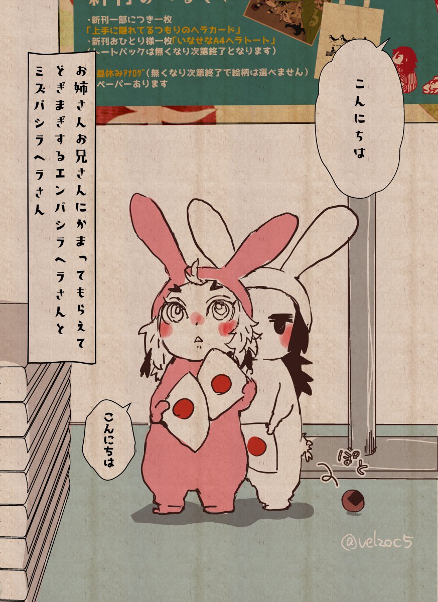 35 423 明日7/30は東京ビッグサイト日輪鬼譚31、東4ス39ab【いがぐり部品】で新刊既刊ノベルティご用意してお待ちしております🌸※熱中症対策万全でご来場下さい※ 一般参加の方、サークルの皆様、明日はどうぞよろしくお願い致します🌿💞 (絵は電車に乗り込むヘラさんズ) 23/07/29 16:29