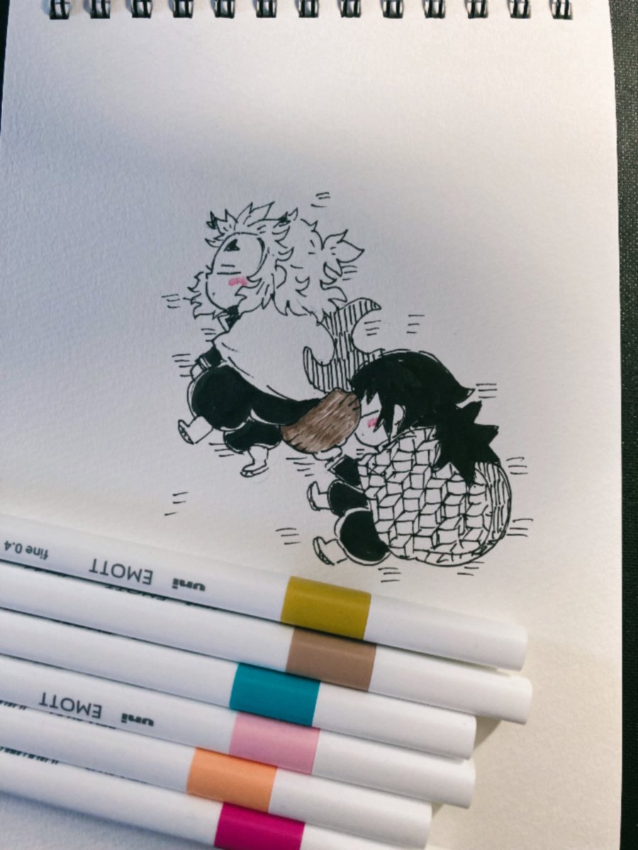 昼休みアナログ しっぽガードどんぐりおぼうししながら寝ちゃった🔥ヘラさん🌊ヘラさん。 差し入れで頂いたスケブと色ペン使わせて頂きました🌸